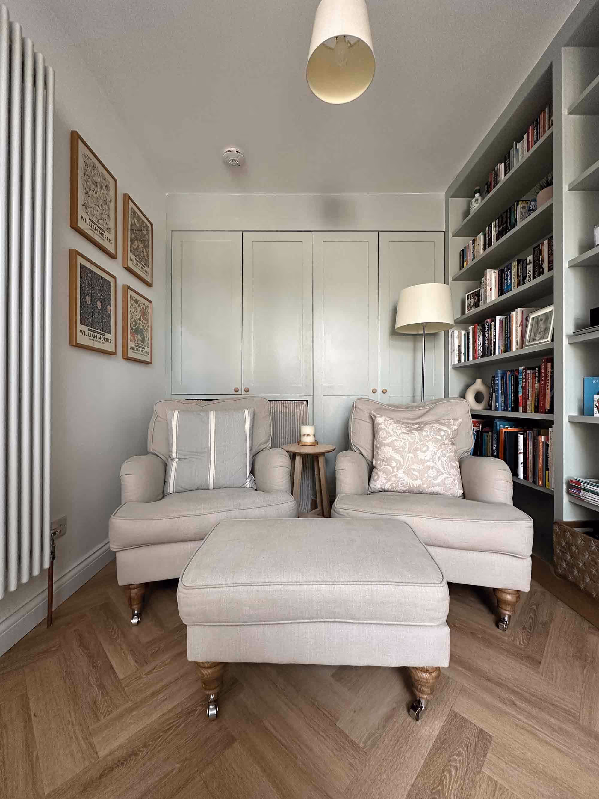 Her favourite room is currently the kitchen, but Imogen says that every time they finish a room, it becomes her new favourite. “We knocked down the old bathroom which sat in the middle of the floorplan downstairs when we moved in and made a big full-width kitchen area, with a snug off to the back and I feel like this just adds a bit of wow factor to the house. We’ve just added some fitted cupboards and a library wall to the snug and it’s the perfect place to sit now. I love it and I’m looking forward to how cosy it’s going to be in the winter too.”