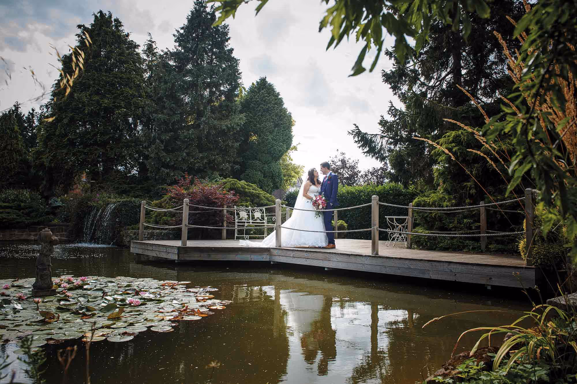 The flexibility of a civil ceremony on site means couples can get married anywhere within the five-acre grounds of Redhouse Farm. There’s over an acre of formal gardens, koi ponds, waterfalls, perfectly striped lawns and play lawns, ensuring that no matter where you set up, the photos will be incredible. There are equally impressive indoor options too, so you never have to worry about the weather.