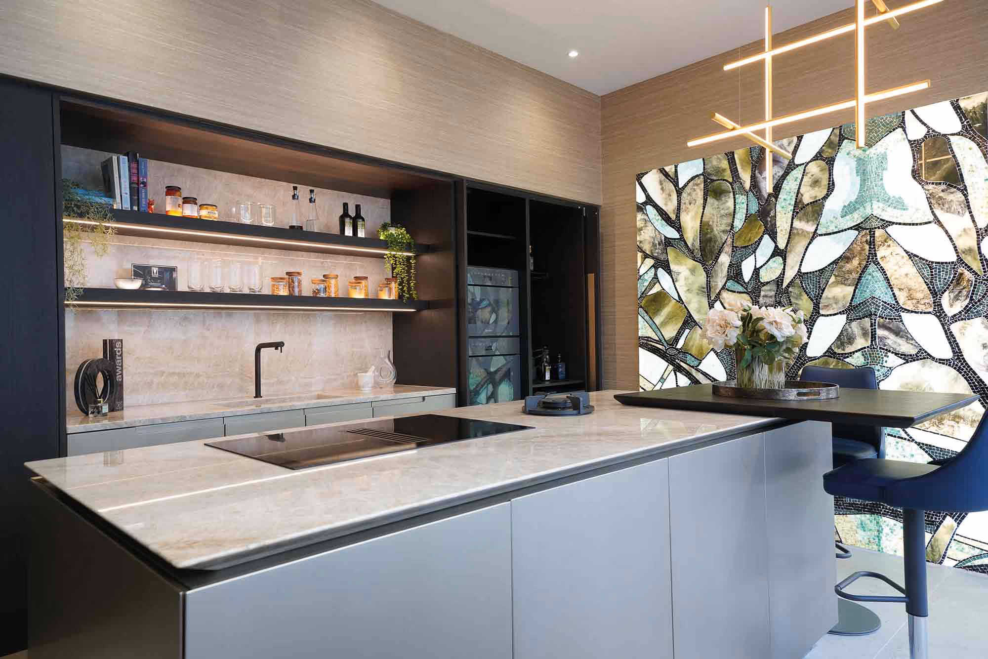 As with all trends, they are merely ‘visitors from the past’ as is the Art Deco resurgence that we’ve seen in the use of lacquer and furniture silhouettes. The incredibly astute use of layouts from that era as well as their love of detail and motifs will be a thing. Texture, tone and nods to nature and sustainability are all in play – wood is always a design permanent and plays such a key role in any space – adding rustic charm and conversely a modern sleek, minimalist touch to a room. Stone, another earthly material, expands its uses with large stone surfaces, which I’ve always found add a sense of grandeur and a talking point that has grown in importance this year with minimalist large format surfaces adding impact to every room.