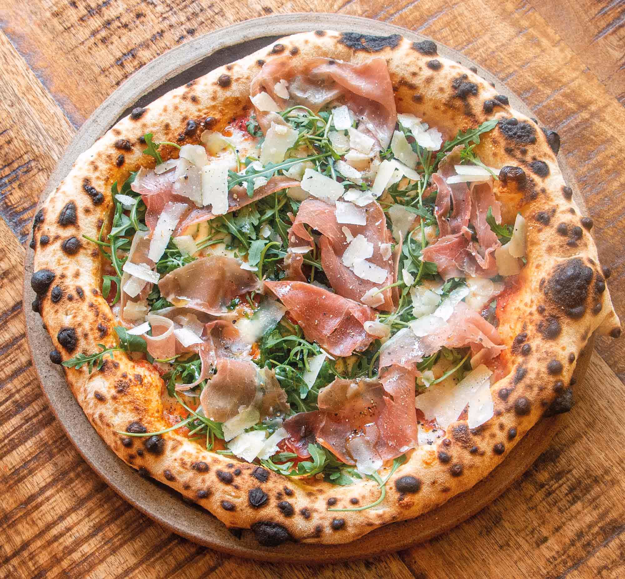 Vieni’s design is bold, feminine and inviting, created to feel like stepping into Nonna’s house. An open kitchen sits at the heart of the space, alongside bespoke Sicilian-inspired wallpaper, handmade plates by Moulded by Sarah Jane, a statement disco ball from Disco Heads, a Bertha charcoal oven, and a striking Ferrari-red coffee machine.