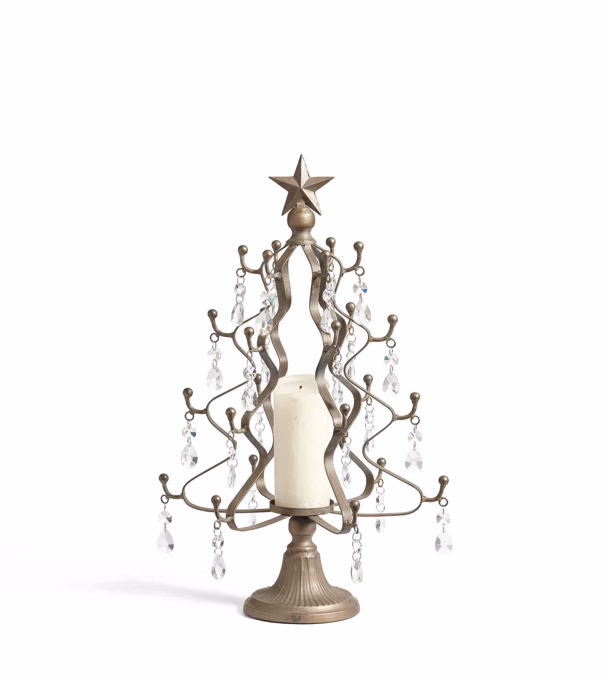 Themost festive way to display your table candles, the Noel candle holder is adelightful addition to your dinner set-up. This antique bronze-plated metalholder features glass beads dripping off the branches, beautifully catching thecandle light.